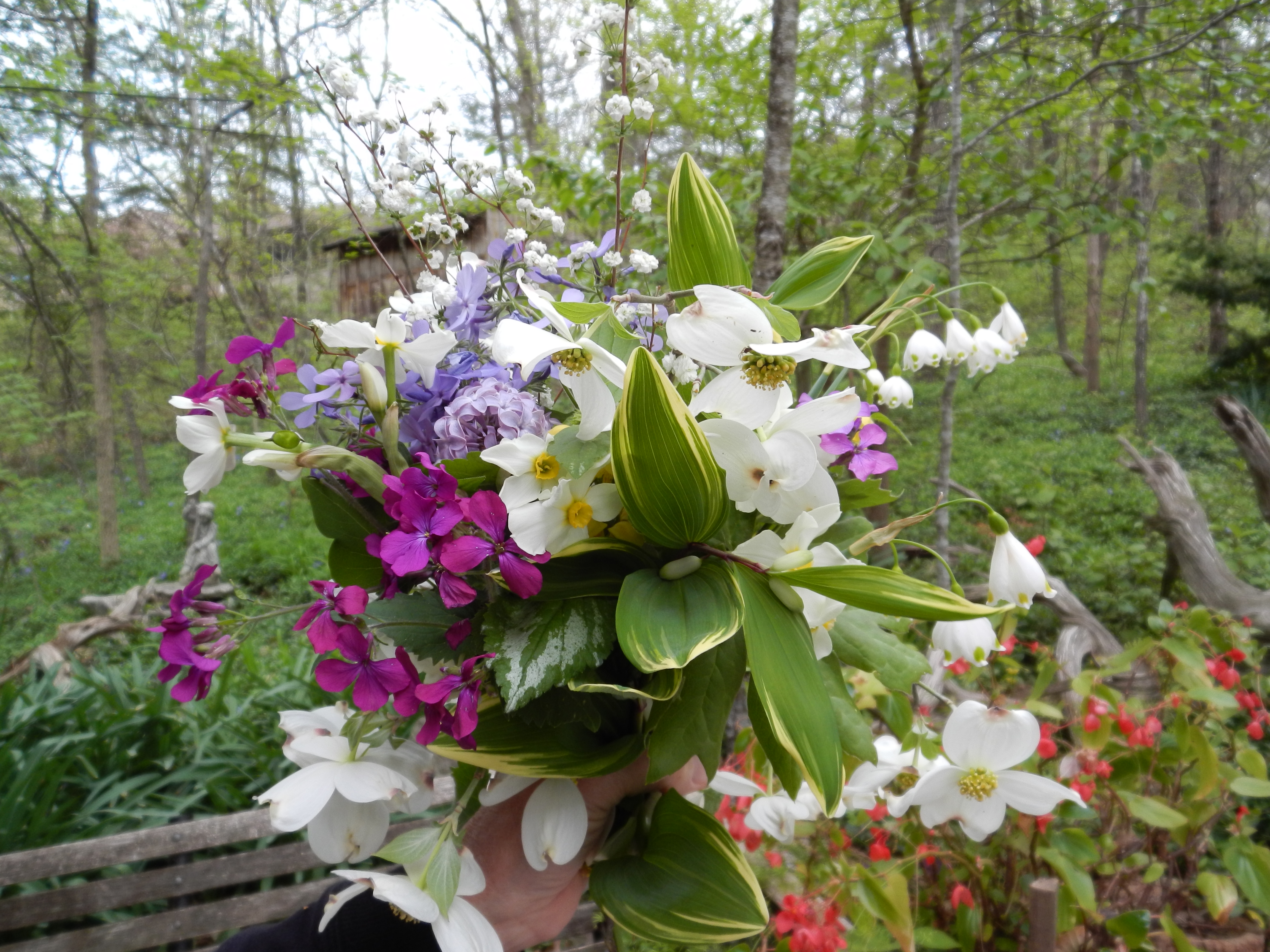 Happy May Day to all of you. I can’t send you a May Basket, but I send you the above photo of a handful of flowers I picked in my father-in-law Marvin’s yard on Easter Sunday. My mother-in-law Ruth planted beautiful flowers over the years, and though she’s gone now, those flowers live on. So, enjoy the bouquet from us, and maybe tell someone Happy May Day today!…and get going on those nuts, mints, chocolate chips and mini marshmallows!